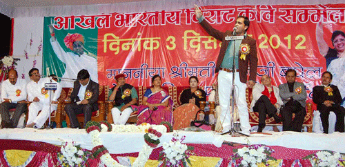 मनावर। 3 दिसंबर को गुलाबी ठण्डी रात को 9 बजे जब मेला मैदान में कैबिनेट मंत्री रंजनाजी बघेल के जन्मदिन के उपलक्ष्य में आयोजित कवि सम्मेलन का जब आगाज हुआ तो काव्य रस प्रेमियों का उत्साह देखते ही बनता था हजारों की संख्या में मौजूद श्रोताओं ने काव्य रस की गंगा में अवगाहन किया। कार्यक्रम के आरंभ में मॉ शारदा की रचना मंजुजी दीक्षित ने पेश की। हरेन्द्रजी चौहान कुक्षी के रचना पाठ के बाद इंदौर से पधारे वीर रस के कवि मुकेशजी मोलवा ने बालीपुर वाले बाबा का स्मरणकर ओजस्वी शैली में राष्ट्रभक्ति का शंखनाद करते हुए अपना रचना पाठ किया तो अंदाजा हो गया कि इस कवि सम्मेलन को नई उुंचाइयां जरूर मिलेगी। श्ािवाजी और बाबा रामदेवजी पर के्रन्द्रित कविता के बाद दोगले नेताओं पर कटाक्ष करते हुए मोलवा ने कहा''कायर कभी कायरता से विरक्त नहीं हो सकता है। जयचंद का वंशज कभी देशभक्त नहीं हो सकता है है'' ने खूब तालियां बटोरी। वीर रस के कवि मनवीरजी की रचनाओं को भी खूब सराहना मिली। मंजूजी दीक्षित ने एक-दो कविता सुनाकर श्रोताओं को निराश किया। ब्रजेन्द्रजी चकोर के चुटीले व्यंग्य और अथश्रीमहाभारत कथा को अच्छा प्रतिसाद मिला। विष्णुजी सक्सेना ने छोटे-छोटे मुक्तकांे को बहुत ही सधी हुई शैली में बुलंद आवाज में पेश कर सबकों मंत्रमुग्ध कर दिया। उनकी बानगी देखिए''बरसात भी नहीं पर,बादल गरज रहे हैं।''सुलझी हुई है जुल्फें पर हम उलझ रहे हैं। सच तो यह है कि तालों के शहर से आये अलीगढ वाले ने अपनी रचनाओं से ताला बंद कर श्रोताओं को लूट लिया। हिन्दुवादी छबि युक्त प्रकाश पटेरिया रचनाओं में भी इससे मुक्त होते नहीं दिखे। सूत्रधार प्रवीणजी पाल ने भी चुटकुलों और हास्य घटनाओं पर केन्द्रित कुछ रचनाएं सुनाई।