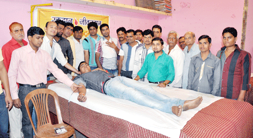 कुुक्षी। श्री आई माताजी मंदिर मूर्ति प्राण प्रतिष्ठा महोत्सव के द्वितीय वर्ष गाठ के अवसर पर देवी कृपा ;क्द्ध गु्रप के तत्वाधान में रक्तदान षिविर का आयोजन रखा गया जिसमें समाज के गणमान्य नागरीकेा के साथ नगर के अन्य समाजो के लोगो ने भी रक्त दान में सहभागिता की