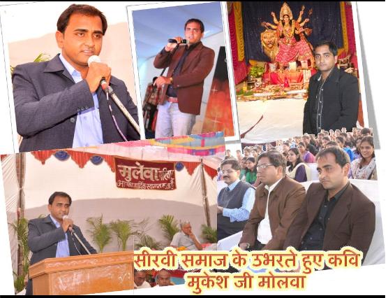 सीरवी समाज के उभरते हुए वीर रस के कवि इन्दोर के निवासी श्री मुकेश जी मोलवा अपनी ओजस्वी वाणी की वजह से हर दिन नई उच्चाईयो को छु रहे है अभी हाल ही मे मुम्बई मे अन्तरार्ष्ट्रीय कवि सम्मैलन मे शानदार प्रस्तुती दी माँ आईजी से मुकेश जी के लिए नित नई उच्चाईयो को छुने की मंगलकामनाए करते है ।।।।। दिलीप कुमार सीरवी हैदराबाद से