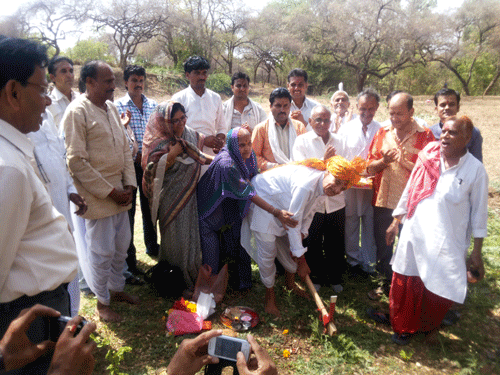 फोटो महेष्वर में भूमी पूजन करते हुए श्री देवानन्दजी मुलेवा।