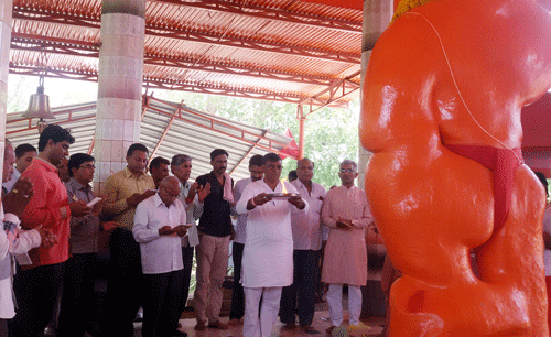 फोटो 01 पदाधिकारियों द्वारा हनुमान जी की आरती करते हुए।