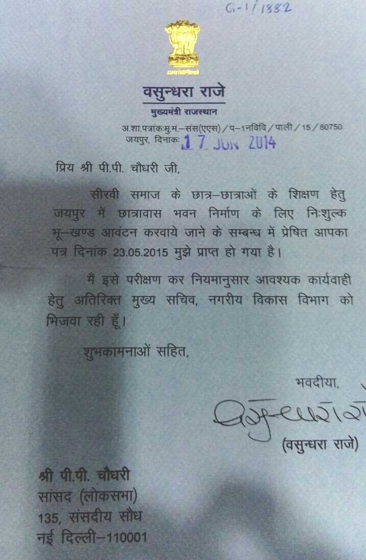 सीरवी समाज के लिए शिक्षा के क्षेत्र में पाली सांसद पी.पी. चौधरी और राजस्थान की मुख्यमन्त्री वसुंन्धरा राजे का सराहनीय कदम।। अगर सपना सच होता है तो ख़ुशी की बात होगी।।।