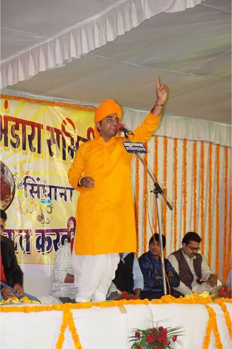 फोटो25एमएनआर12मंच पर कविता कहते कवि सिर्वी मुकेश मोलवा ।