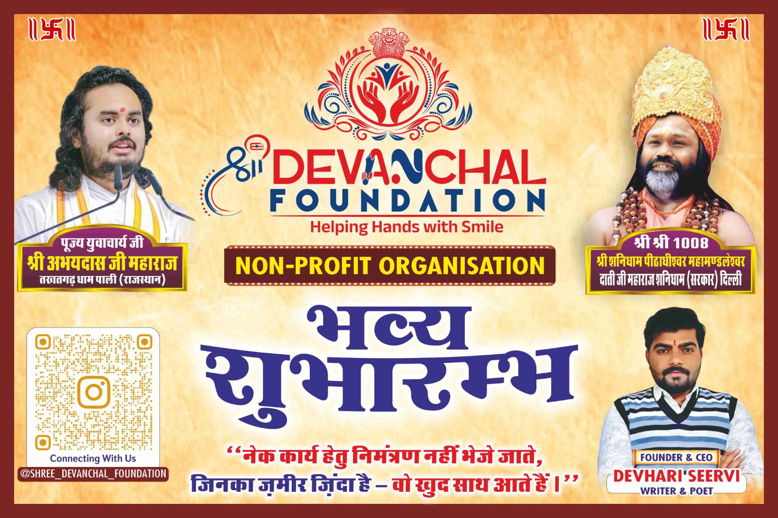 दिल्ली, शुक्रवार। राजधानी में शुक्रवार को “श्री देवांचल फाउंडेशन” का भव्य शुभारंभ किया गया। कार्यक्रम का उद्घाटन श्री 1008 श्री शनिधाम पीठाधीश महामंडलेश्वर श्री दाती जी महाराज तथा पूज्य युवाचार्य श्री अभयदास जी महाराज के कर-कमलों द्वारा संपन्न हुआ। इस अवसर पर दिल्ली सहित विभिन्न क्षेत्रों की कई प्रतिष्ठित हस्तियाँ उपस्थित रहीं।