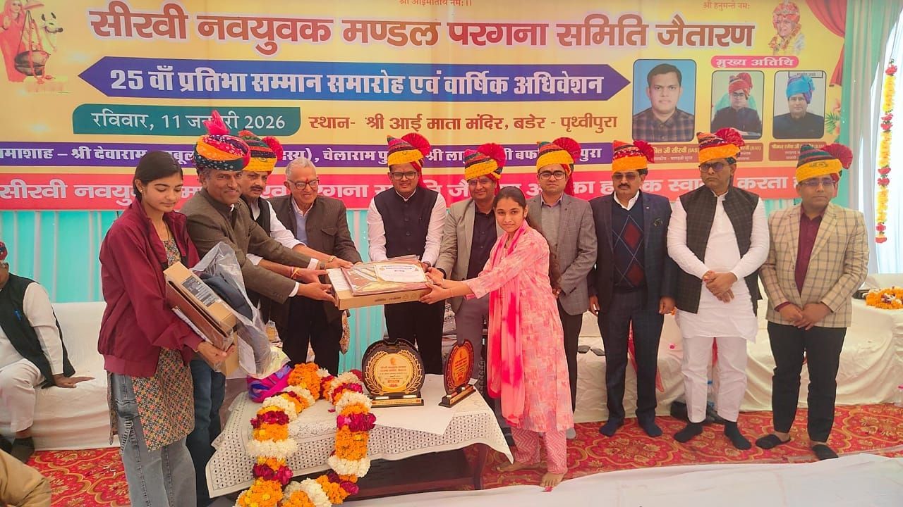 जैतारण (ब्यावर)। क्षेत्र के पृथ्वीपुरा गांव स्थित श्री आई माता मंदिर (बडेर) प्रांगण में रविवार को सीरवी समाज नवयुवक मंडल परगना समिति, जैतारण की ओर से सीरवी समाज के धर्मगुरु दीवान माधवसिंह के सान्निध्य में 25वां भव्य प्रतिभा सम्मान समारोह एवं वार्षिक अधिवेशन हर्षोल्लास के साथ आयोजित किया गया।